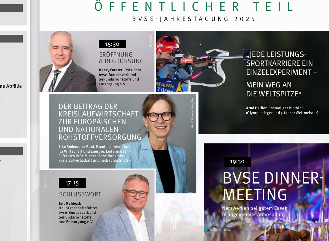 Am 24. September geht es ab 09:30 Uhr mit weiteren Fachverbandssitzungen weiter und um 15:00 Uhr endet dann die bvse-Jahrestagung.